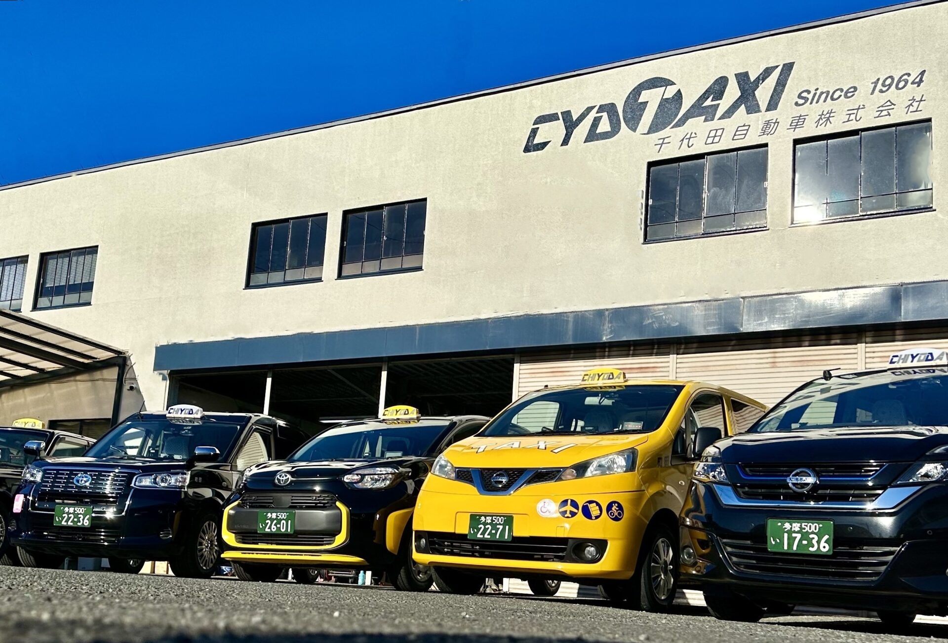 弊社は2026年に創業70周年を迎えるタクシー会社です。鉄道のない武蔵村山の地で公共交通の一端を担うタクシー業一筋、地元では「ぶようさん」と親しまれてきました。
